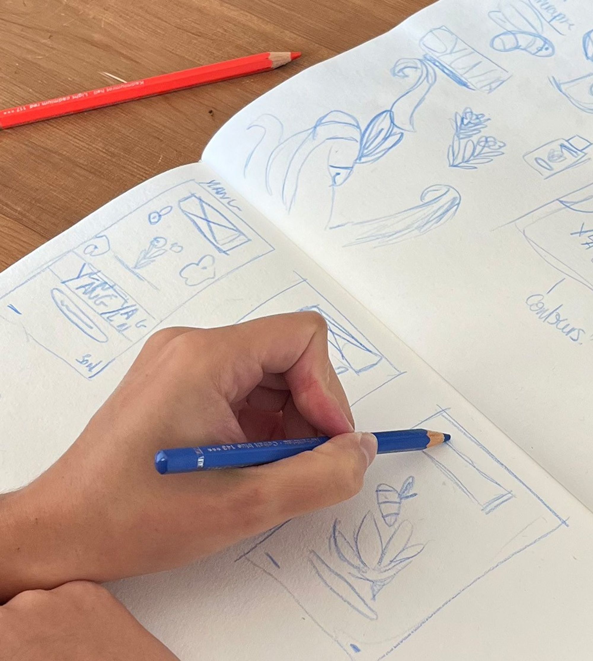 Une fois l'identité visuelle définie, le projet se prolonge à travers un shooting photo. Cette étape permet de traduire l'univers graphique dans des images réelles, cohérentes avec la marque et ses valeurs. J'ai travaillé en collaboration avec la photographe Lauréline Reynaud, spécialisée dans les packshots pour définir les ambiances, les cadrages et les éléments de mise en scène.